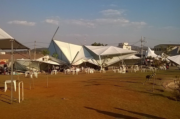 Uma tenda desabou no bairro Jardim Canadá neste final de semana deixando pelo menos oito pessoas feridas, segundo informações de autoridades. Entre os feridos está um adolescente de apenas 13 anos de idade.