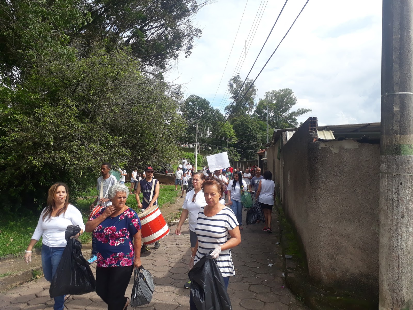 A manifestação que se iniciou na praça ao lado da Escola Municipal Antonieta Dias de Souza, andou pelos dois lados da Avenida Aldo Zanini. Várias pessoas recolhiam lixos atirados por moradores de dentro da Banqueta.