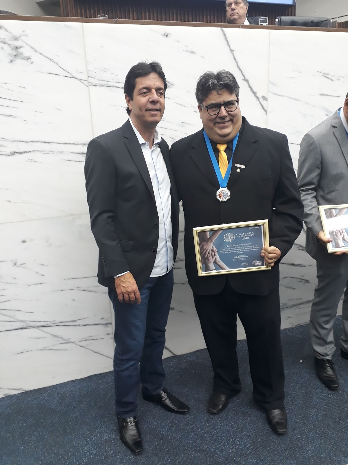 O presidente do Solidariedade Nova Lima, Paulo Seabra, ganhou o prêmio de Comenda Solidariedade dado pelo vereador Professor Wendel, na Câmara Municipal de Belo Horizonte. A premiação é destinada para pessoas que se destacaram em trabalhos voluntários. Paulinho tem 46 anos e é casado com Jaqueline. Ele é pai de Ana Caroline, Benjamin e Gabrielle. Formado em Administração de Empresas, pós-graduado em Gestão Pública, ele é presidente do Diretório Municipal do Solidariedade em Nova Lima por dois mandatos. Inclusive, em seus trabalhos na Prefeitura de Nova Lima, o administrador foi o idealizador do Plano Municipal de Segurança, Trânsito e Transporte na cidade e foi, também, assessor da Secretaria de Meio Ambiente do município. Ele dava apoio à Educação Ambiental e ao Centro de Educação Ambiental. Seabra foi, ainda, Chefe de Relações Institucionais na Câmara de Nova Lima, o que comprova sua vasta experiência com a coisa pública e com serviços prestados à Nova Lima. Atualmente é presidente do Unidos dos Rosário que está comemorando 55 anos de tradição e entregando lazer aos nova-limenses. Paulinho também é assessor do deputado federal Zé Silva e atua pelo parlamentar em mais de 60 municípios mineiros. Eles garantiram um repasse para a saúde de Nova Lima advindo de emenda parlamentar.