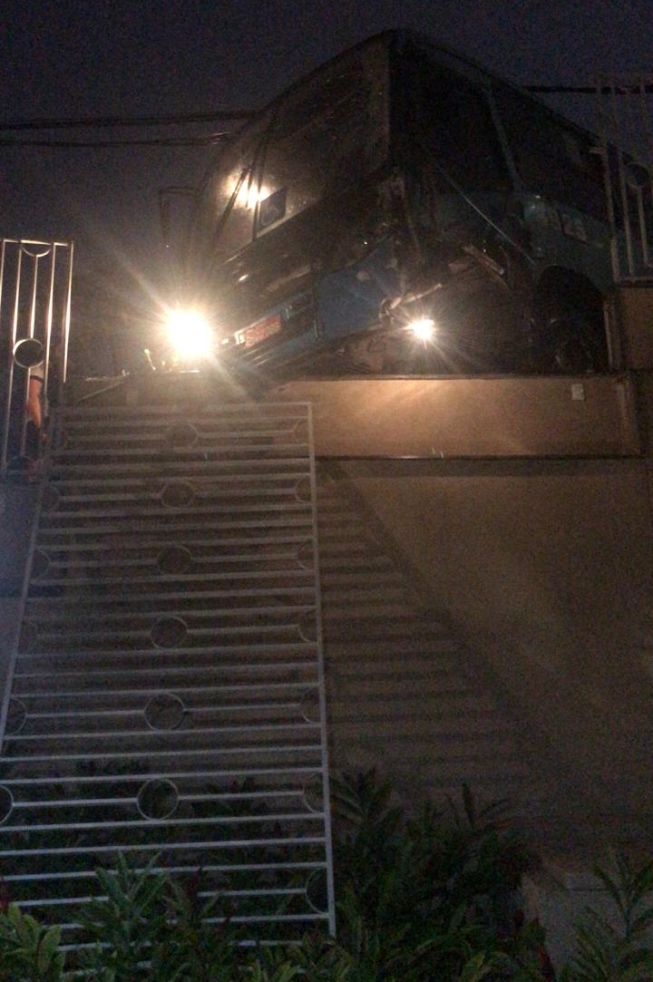 Um ônibus atingiu o muro de um condomínio no Vila da Serra nesta última segunda-feira. O condomínio fica em Nova Lima, na Região Metropolitana de Belo Horizonte.