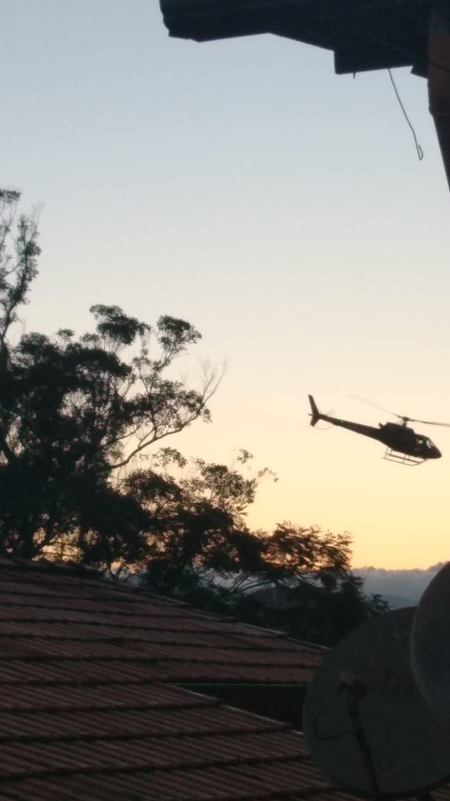 Um helicóptero foi chamado para dar suporte para a operação, uma vez que homens fugiram do cerco policial. Cães farejadores estão sendo usados.