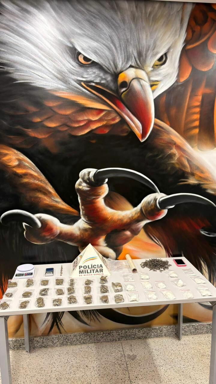 Os militares foram até um imóvel no bairro Honório Bicalho, em Nova Lima, onde encontraram porções de maconha e cocaína, além de balanças de precisão e materiais usados no preparo e embalo de drogas.