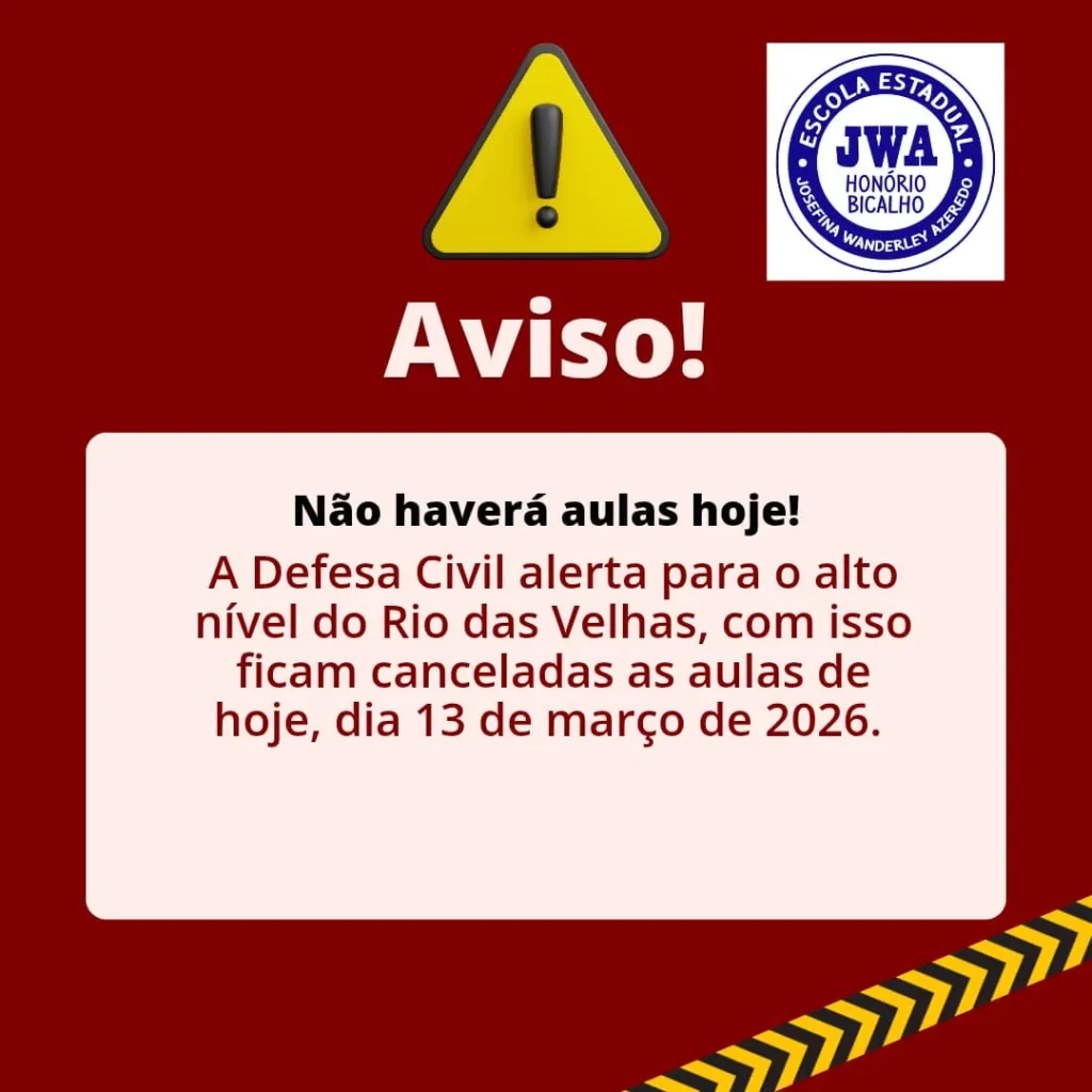 JORNAL SEMPRE – As aulas na Escola Josefina Wanderley Azeredo, localizada em Honório Bicalho, foram suspensas nesta sexta-feira, dia 13, em razão da situação de alerta envolvendo o Rio das Velhas em Nova Lima. A informação foi divulgada por meio de comunicado oficial da instituição.