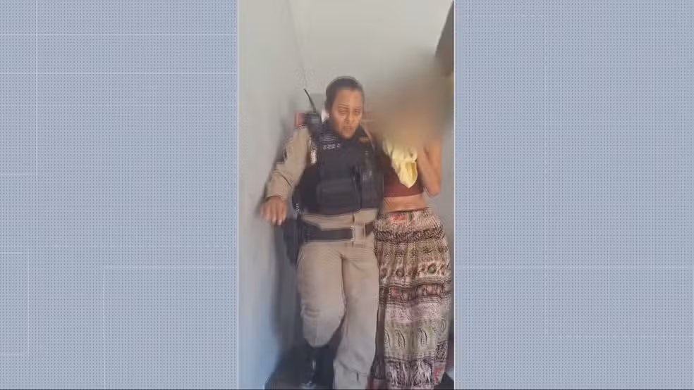 Segundo a polícia, os militares foram até a casa indicada na denúncia e precisaram entrar no imóvel pelo telhado. Imagens mostram o momento em que uma policial sobe na estrutura e acessa a residência por uma janela.